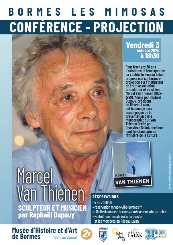 Pour fêter ses 30 ans d’existence et témoigner de sa vitalité, le Réseau Lalan propose une conférence-projection sur l’instigateur de cette association, le sculpteur et musicien Marcel Van Thienen (1922-1998). Animé par Raphaël Dupouy, président du Réseau Lalan, cet hommage sera accompagné de la présentation d’une